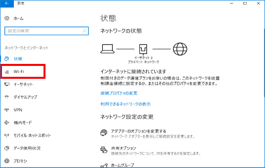 次に表示された画面の左にある「Wi-Fi」をクリックします。