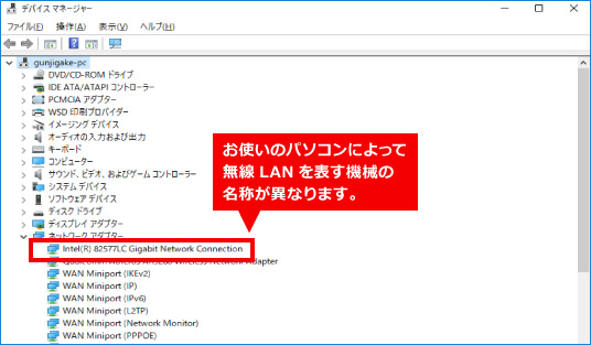 ※「~wireless」の項目が無い場合は、パソコンに無線LANが内蔵されている場合には認識をされていません。