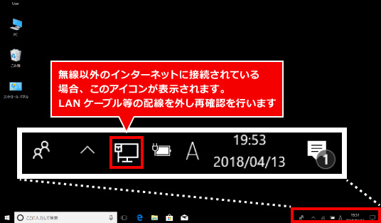 ③ パソコン画面の右下にある無線LANアイコンの状態を確認します。