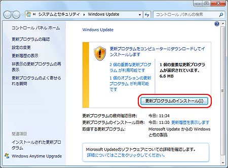 - [更新プログラムのインストール]をクリックします。