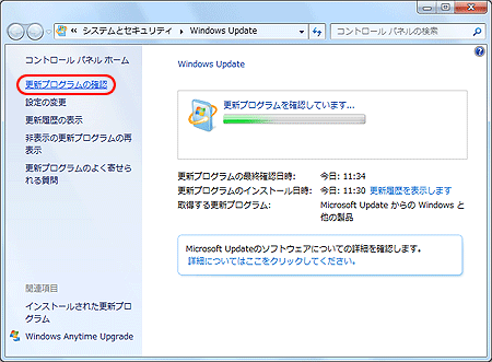 - [更新プログラムの確認] ボタンをクリックします。